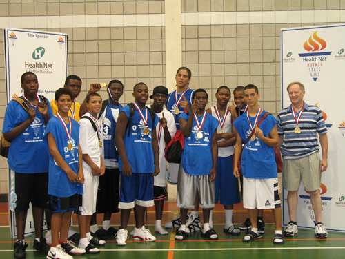 The Fairlawn Park Basketball Association's Connecticut Kingz 15-under team won the gold medal at the 2006 Nutmeg State Games in Bridgeport. The Kingz won the Gold in a 54-51 overtime victory over the Bridgeport-based Connecticut Future Stars. Team members were: from left, Dyrell Person, Desmond Williams, Elliot Ward (16), Anthony Ireland, Mark Ward, Tootie Zimmerman, Gary Madison (16), Jordan Williams, Terron Robinson, Donald Cardozza (16), Marcus Johnson (16), Brian Almeida and Coach Joe Summa. Ward, Madison Cardozza and Johnson were ineligible to play because they are 16, but helped the team practice for the tournament.
